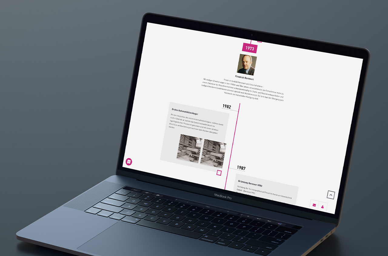 Design/Layout zur Visualisierung der Unternehmens-Meilensteine auf einer eigenen Unterseite.
